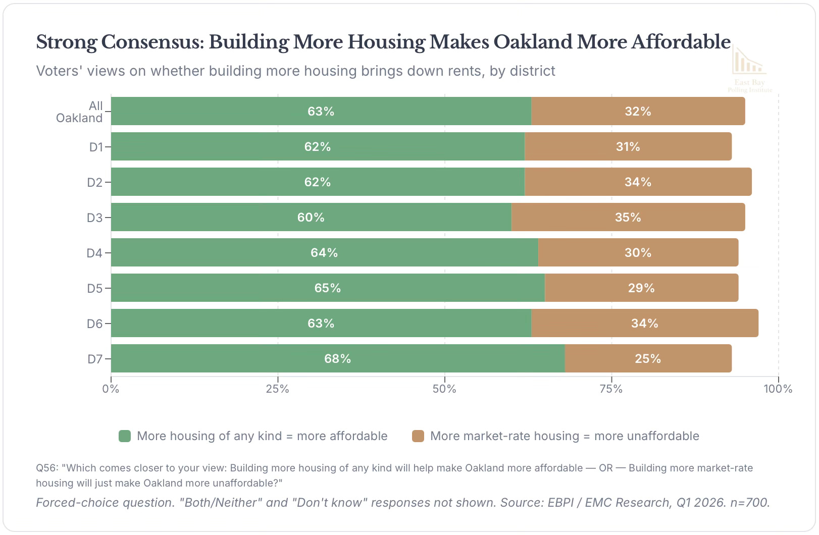 The fact that this holds across all seven districts suggests a real opening for pro-housing policy that Oakland’s political leadership is yet to fully lean into.